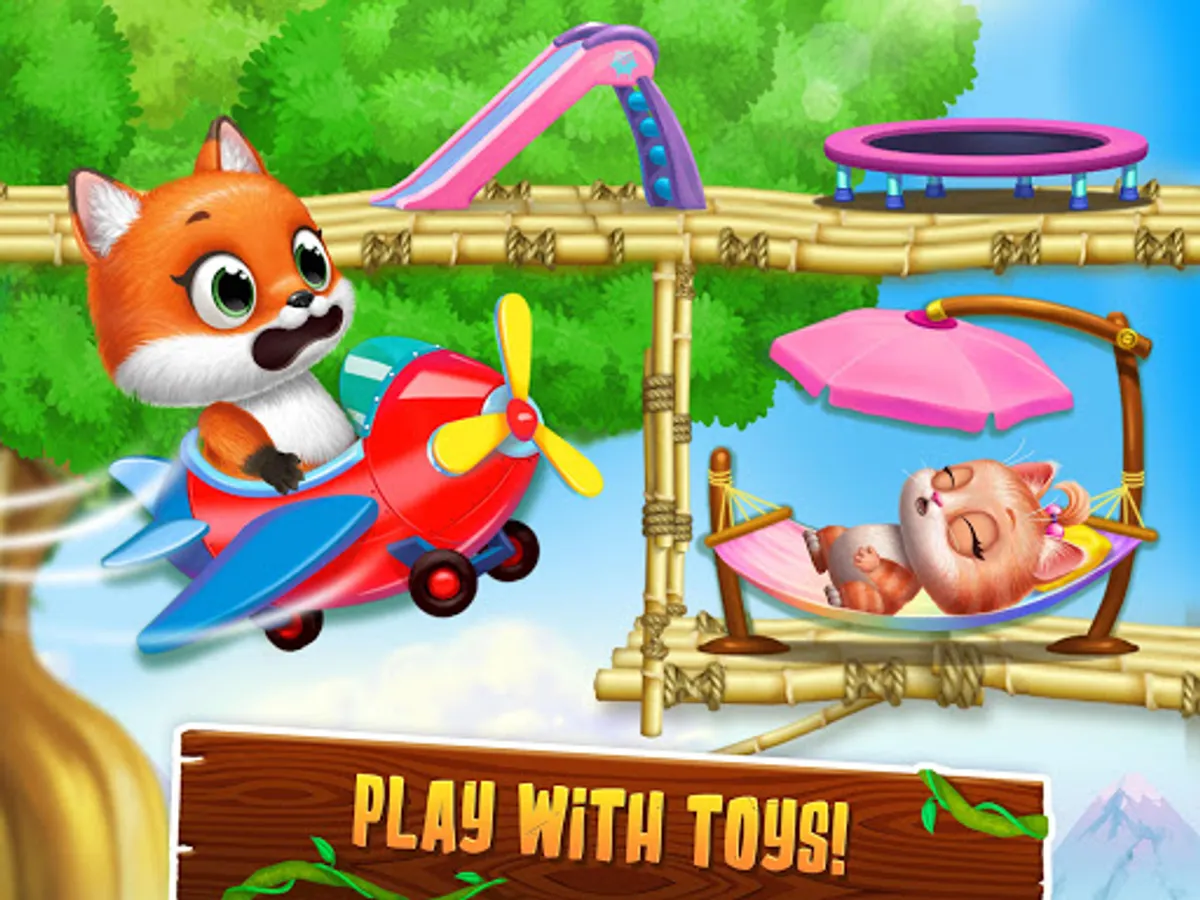 Have fun with panda Lu and animal friends in the coolest treehouse for kids! Build, expand, play, dress up and explore!