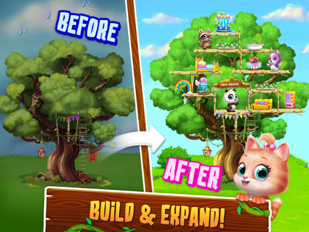 Have you ever dreamed of having a cute secret treehouse where you could hang out with friends, play games, eat yummies and just do fun and crazy stuff? If so, then welcome to Panda Lu Treehouse game where kids can build the most epic treehouse, create as many rooms and levels as they want, care for little pets, add fun toys and choose cute decor! Build as tall or as wide as you wish!