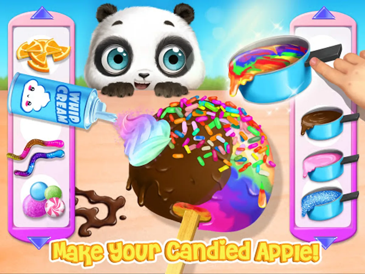 Take a break: enjoy yummy candy apples with little panda Lu and pet friends! Choose glitter frostings and decorate them with colorful sprinkles. Time to take some cool pictures at the amusement park’s Photo Booth! Dress up little panda Lu in adorable outfits for kids, add fun accessories and choose a background!