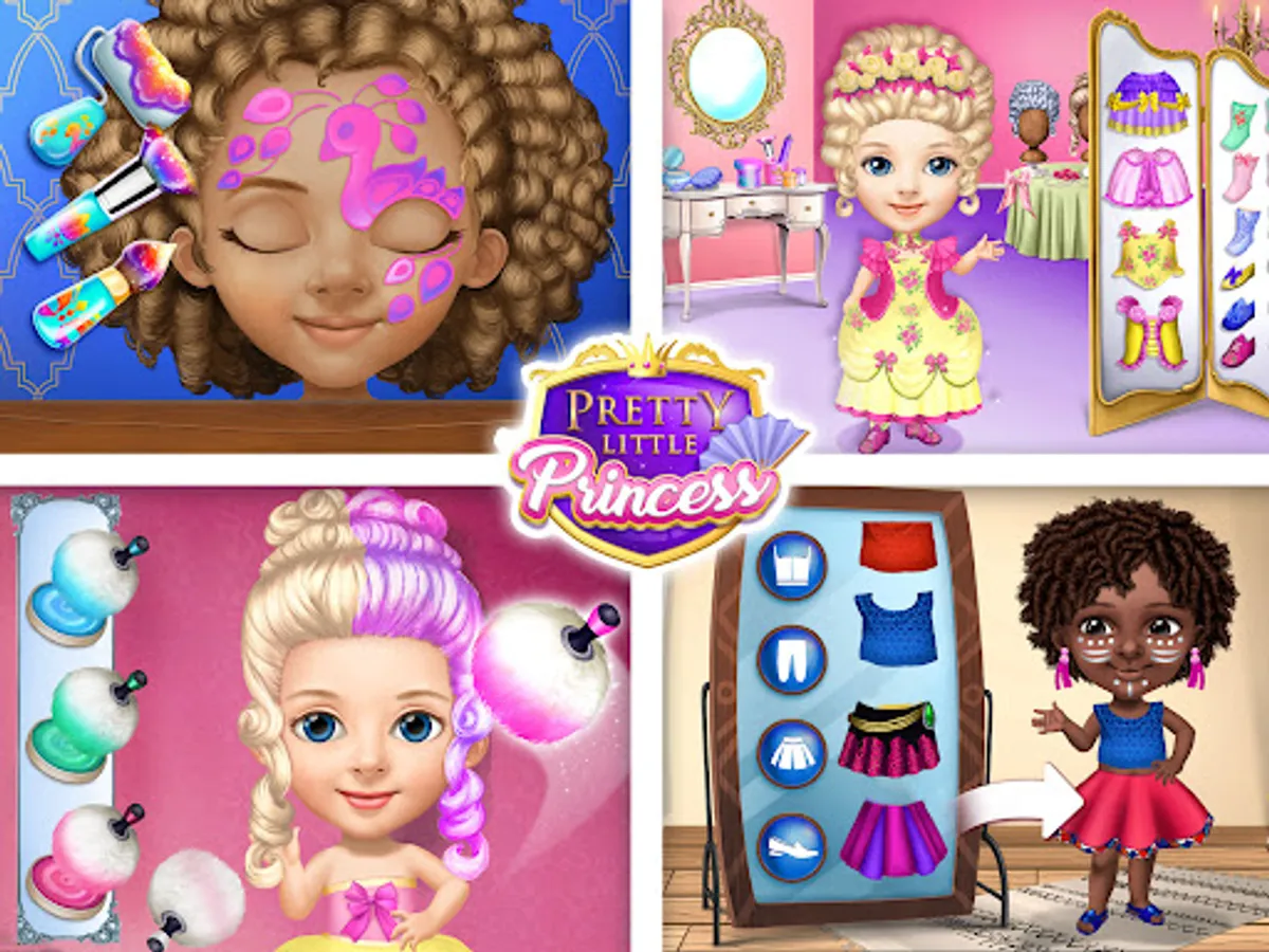 Welcome to the Pretty Little Princess world! Meet and play princess games with four adorable baby girls - Isabel, Talika, Kiara and Mei. Every Pretty Little Princess has a unique fashion style and favorite beauty routines. Run your own princess salon and help the princesses get ready: design the perfect princess outfit, style hair, do makeup and accessorize!