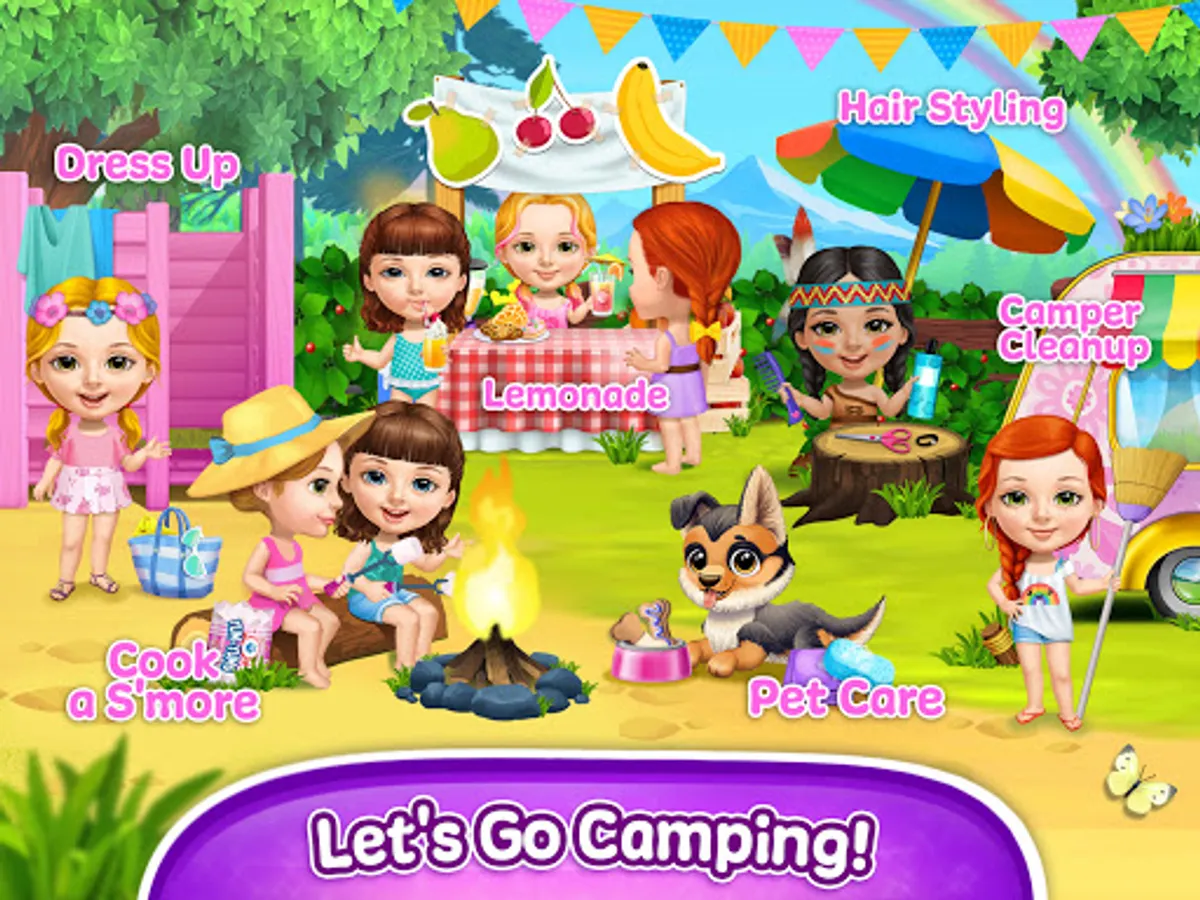 Play the best games for girls in your dream summer camp with Sweet Baby Girl and friends! Explore super fun summer holiday activities and play the cutest girl games. Dress up and style hair for Sweet Baby Girl – mix and match girly clothes and dress up for the best summer holidays! Get creative with fun summer hairstyles: wash, brush, cut and style hair. Clean up and decorate the girls' camper and go kayaking with your best friends in the river! Make fresh summer fruit lemonade and roast super sweet marshmallows over a campfire, play games with other kids! Play kids' games with Sweet Baby Girl and have the best summer!