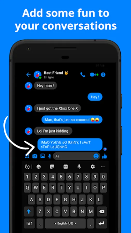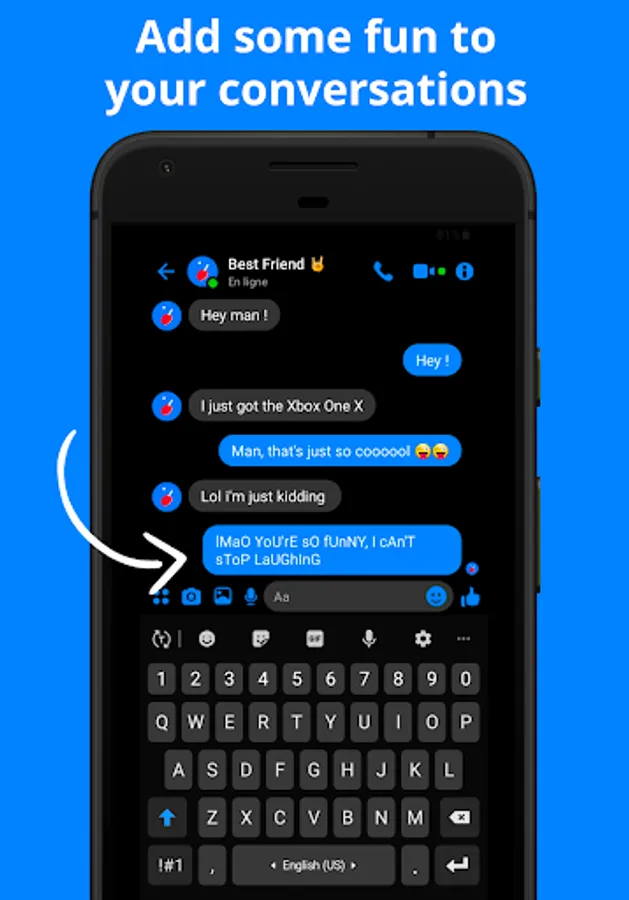 This app help you to add a touch or irony by simply selecting your text, click on the three dots then on the 'mAkE mE iDioT' button