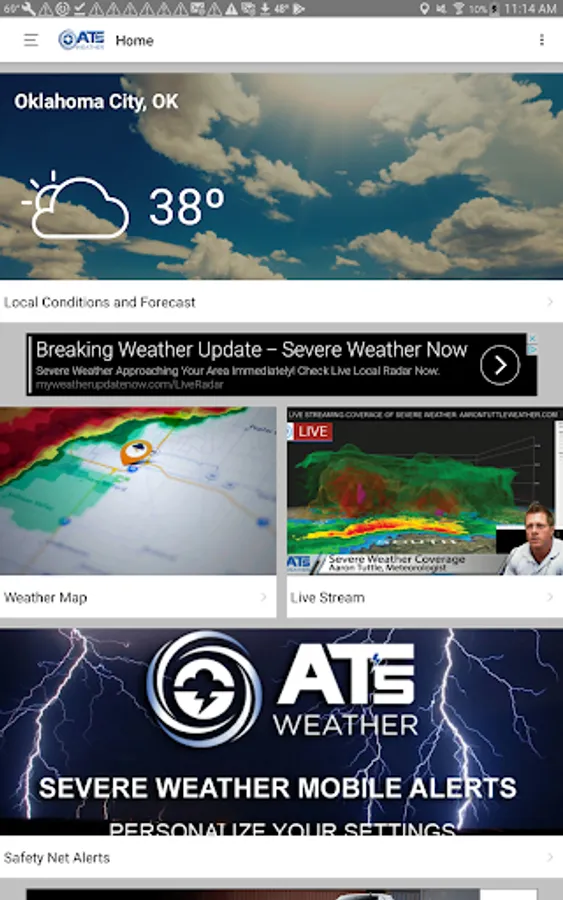 Aaron Tuttle is an Oklahoma Meteorologist with the federal government that works on weather radar safety systems. He also spent a decade in local TV news protecting millions from severe storms. Place your trust in the hands of this severe weather expert and try ATsWeatherToGo today!