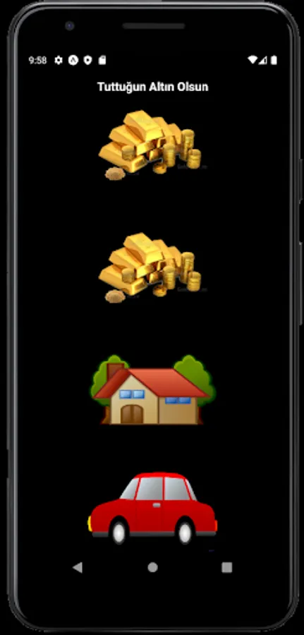"May God Make What You Hold Gold" application offers users an enjoyable gaming experience. The aim of the game is to earn rewards by turning the objects that appear on the screen into gold.