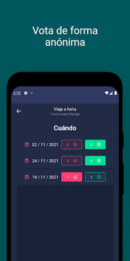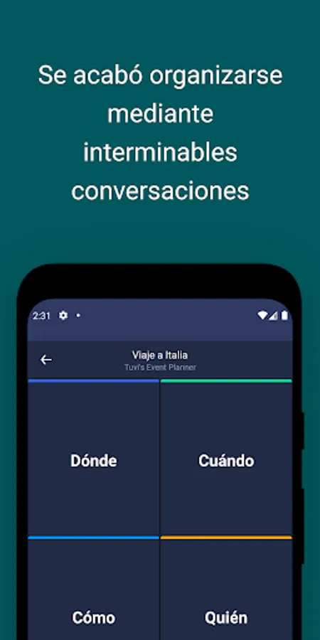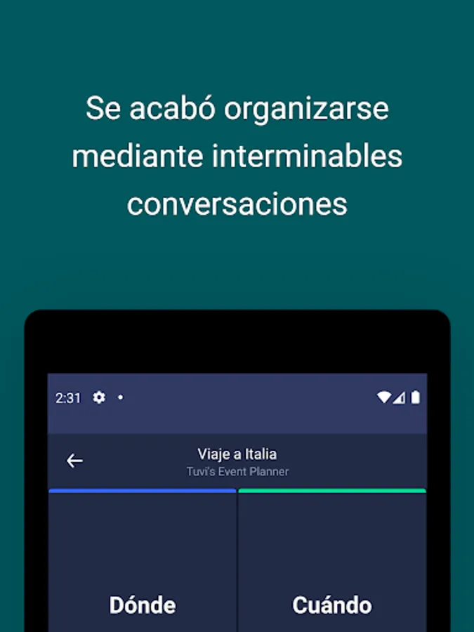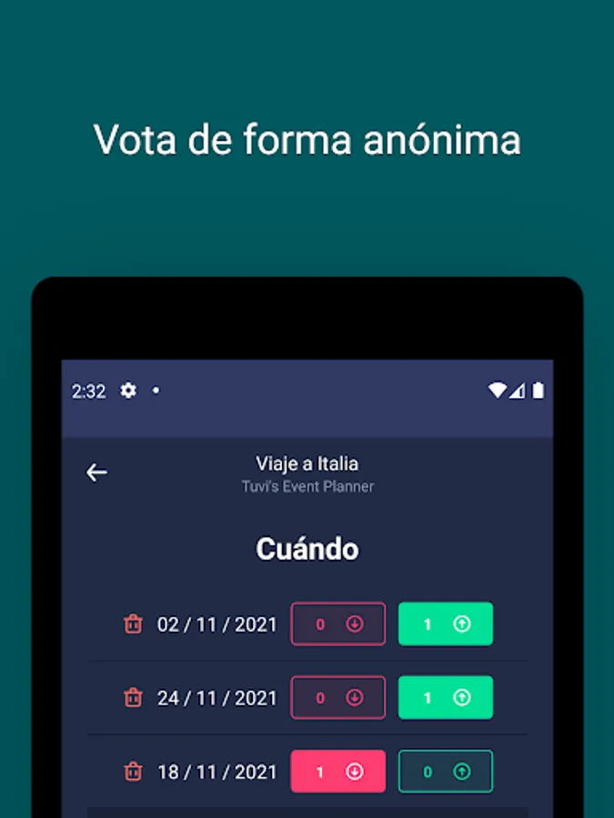Tuvi’s Event Planner allows you to make all kinds of plans: dinners with friends, reunions with former students, company dinners, Christmas dinners, invisible friends, trips, birthdays, and all the plans that you can think of.