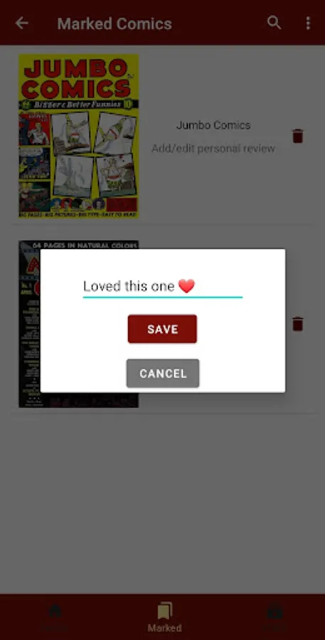 ComicToon is an app that display comics from 1990s, providing information for each comic as well as marking your favourite one. The app allows you to manage your favourite comics by adding your personal reviews. You can also delete the comics that you have marked once you're no longer want it.