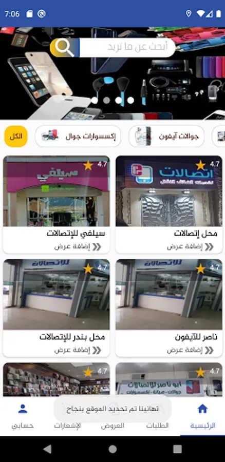 تستطيع أن تجد هنا جميع محلات الإتصالات القريبة منك والطلب منها ويقومو المناديب بتوصيل طلبك إليك في منزلك , وفي التطبيق سوف تجد جميع خدمات الاتصالات التي ترغب بها