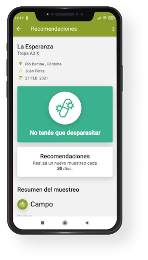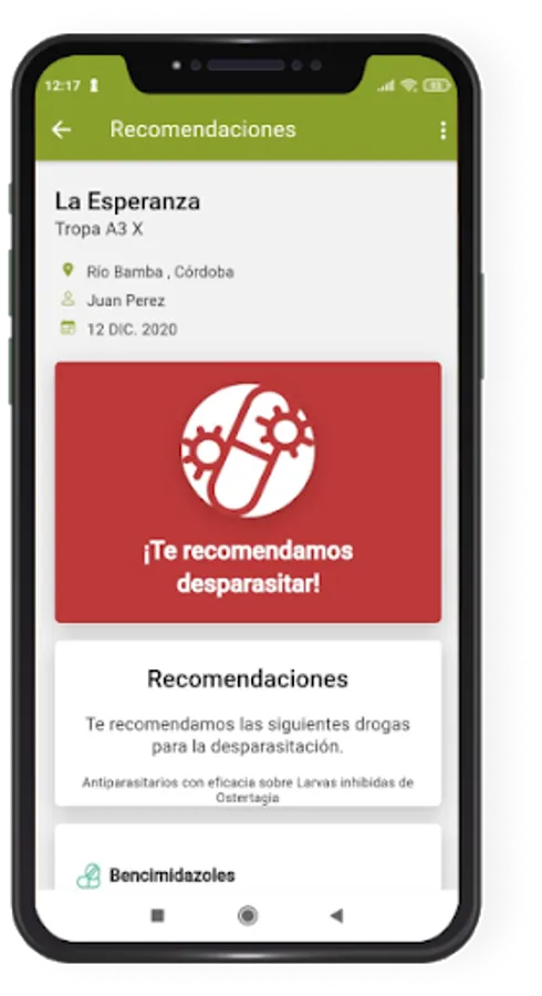 3. I received recommendations: Based on the processing of the data entered, you will obtain recommendations for deworming the animals.