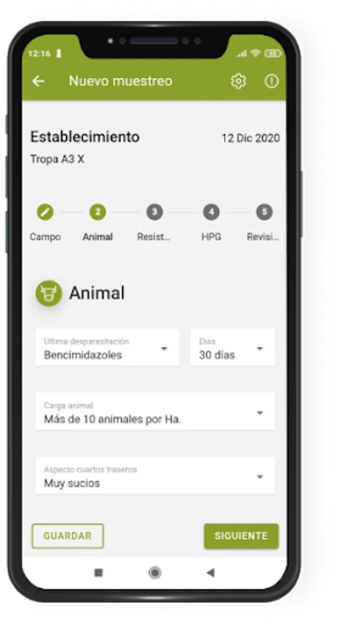 2. Enter data: You will be able to enter data from the field, animals and the parasitological results (HPG) of the analyzed samples.