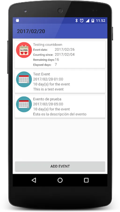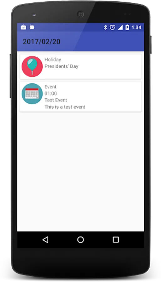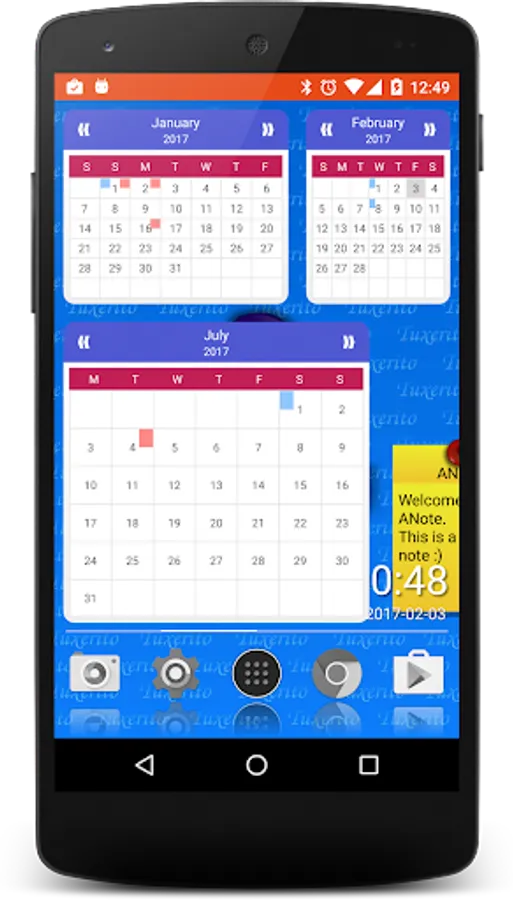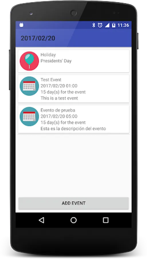 With the calendar in the home screen you can touch in a specific day to visualize the events(blue square) or holidays(red square).