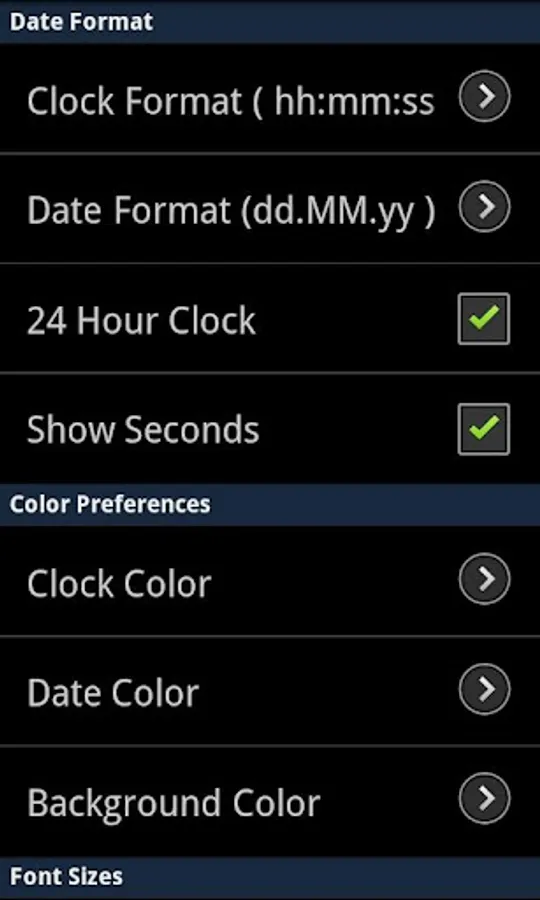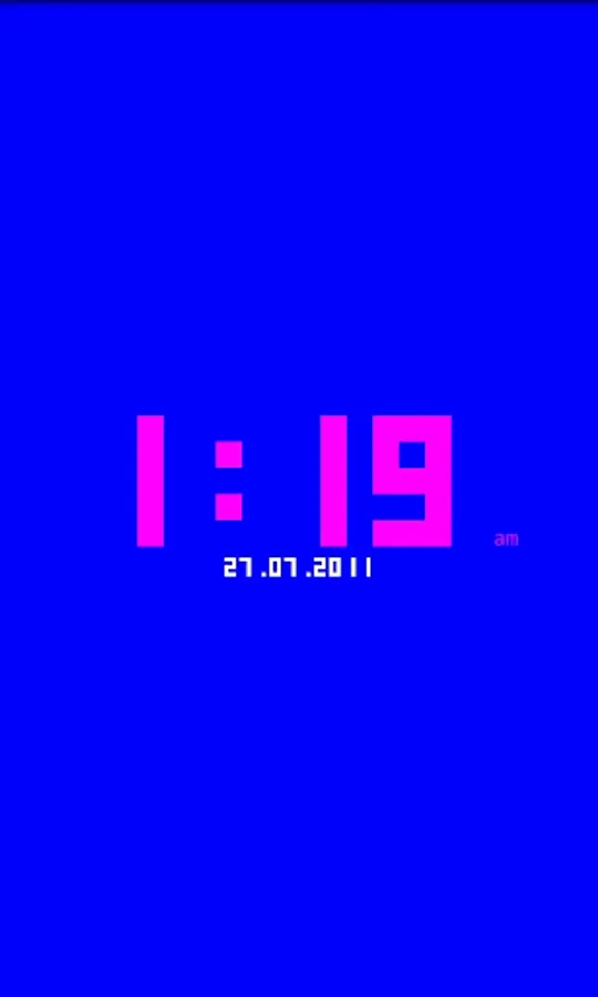 A simple full screen digital clock with free size, color, hour and date format to choose from. Optionally you may disable screen powersaving and turn your device into a true clock.