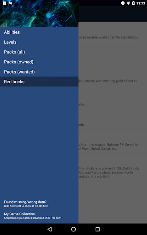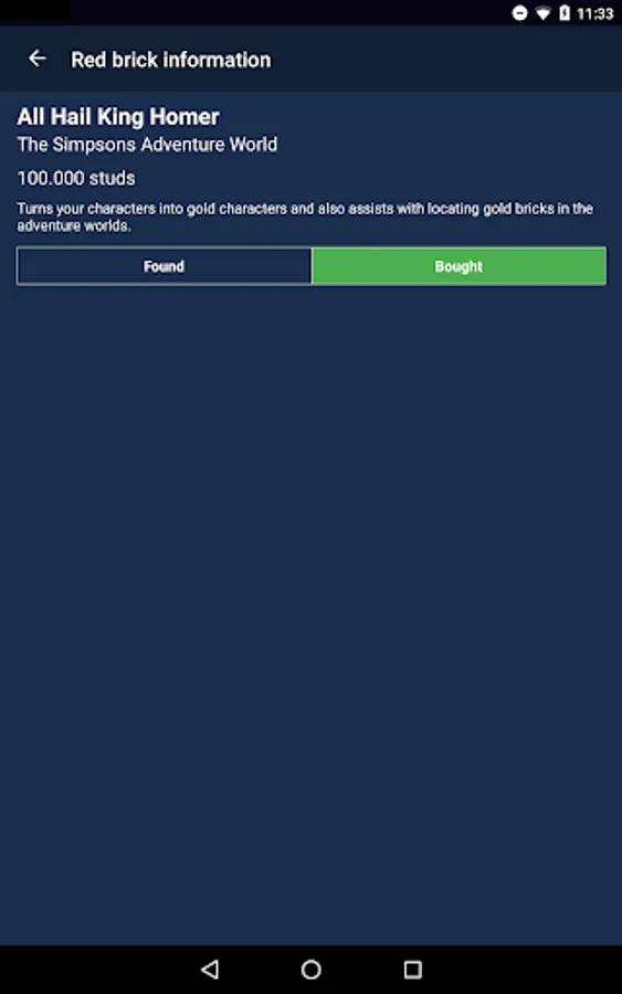 'My Collections: LEGO Dimensions Ed.' is an unofficial app and intended to be used for informational and educational purposes only. 'My Collections: Dimensions Ed.' is NOT licensed by, endorsed by, or associated with Warner Bros., Lego, or the makers of Lego Dimensions.