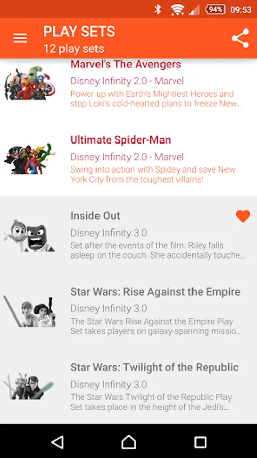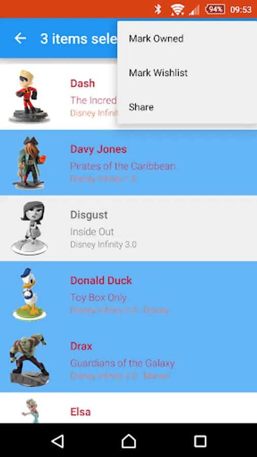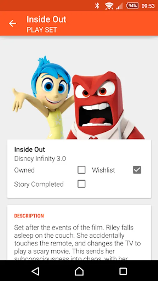 * Keep a wishlist of all characters, play sets, power discs & toy box game discs you want