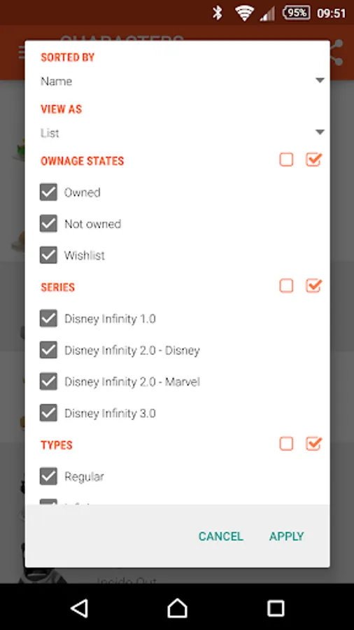 My Disney Infinity Collection is powered by http://www.DisneyInfinityFans.com and as a result contains all current data for all characters, play sets & power discs.
