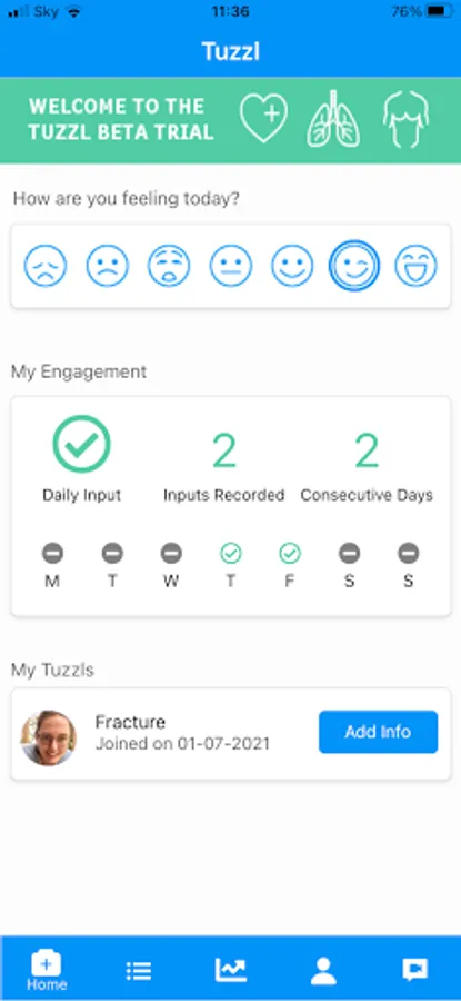 Tuzzl integrates to Google Fitness and if you give it permission will seamlessly sync your Heart rate data so that a Clinician can view along with your daily Tuzzl Input.