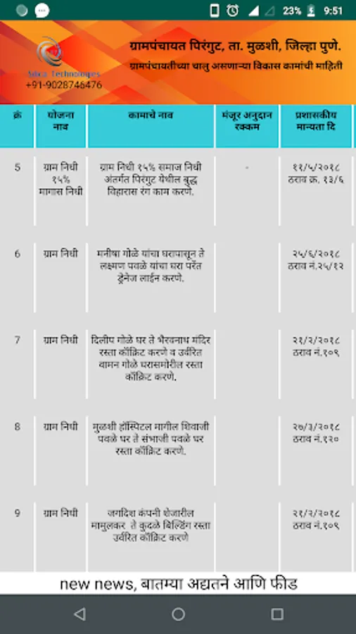 Gram Vikas Seva Application Displays Work Particulars Of Specific Village When Purchased From Silica Technologies.