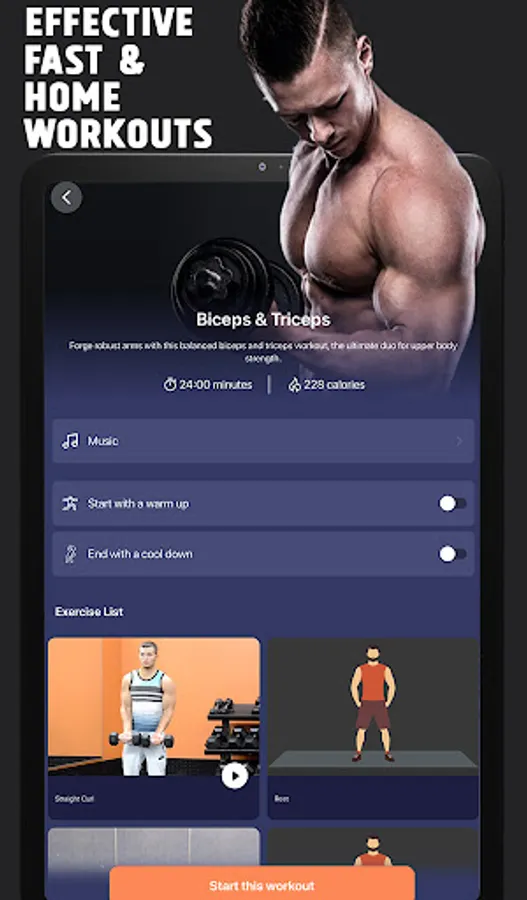 • A workout maker for customizable home workouts or gym workouts.