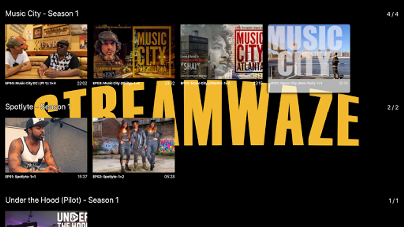 Streamwaze is an over the top (OTT ) streaming media that gives you FREE access to Urban Culture Anytime and Anywhere. WHY STREAMWAZE? Streamwaze provides you with unlimited access to main stream and underground catalogs which consists of Documentaries, Shows, and Feature Films that are focused on urban genre. This service provider offers a library of documentaries, shows and feature films of all genres. We welcome independent filmmakers and entertainment professionals to showcase their talents on this streaming channel.