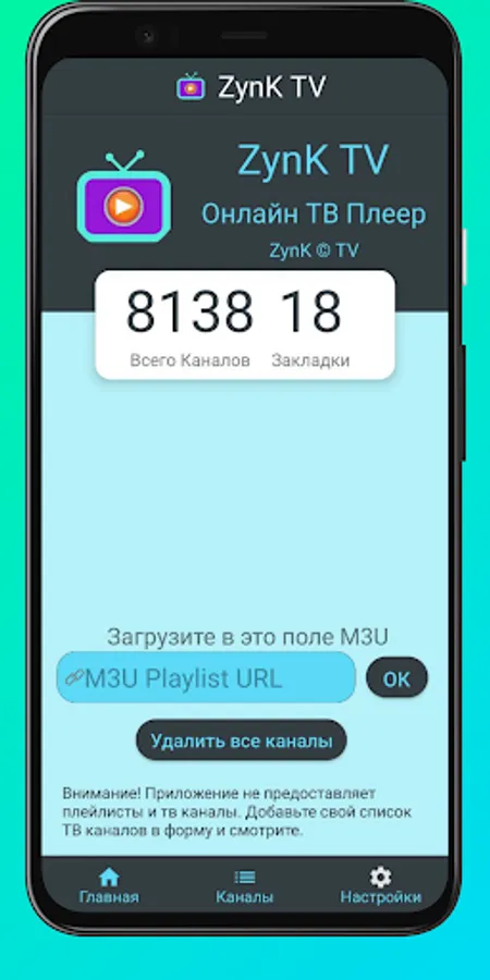 ZynK TV - M3U Player allows you to enjoy your favorite playlist in a few seconds.