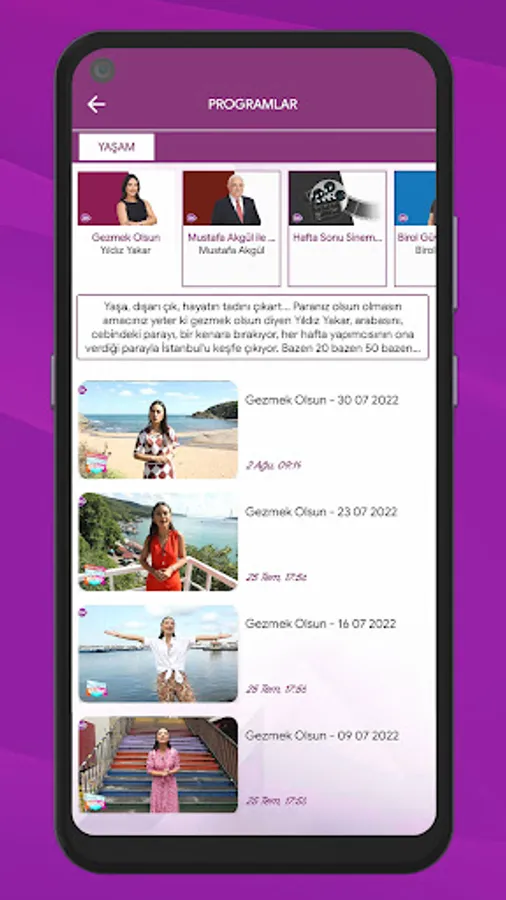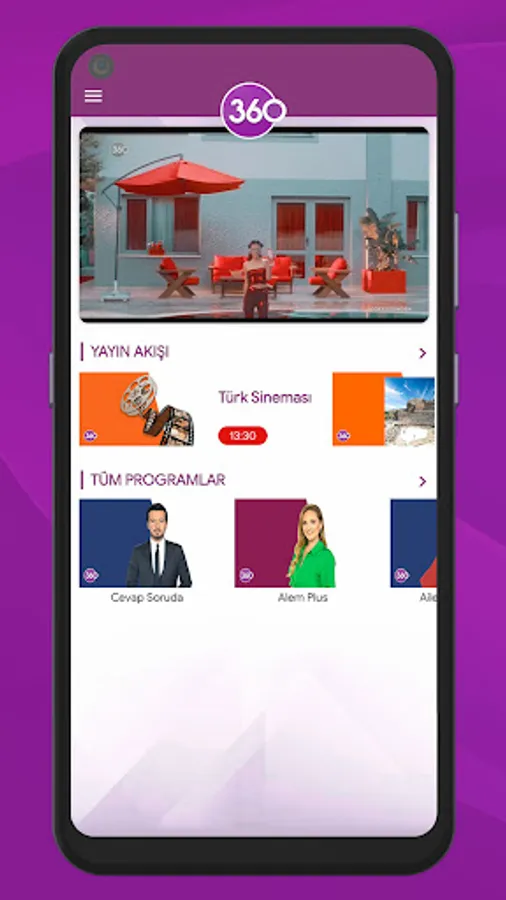 Original productions that touch people and life, conversation, competition programs, local and foreign films and documentary generations, domestic series, productions that bring the changing and developing Anatolia to the screen, bringing different styles of music to the audience in an enjoyable manner and bringing the audience together with the audience. , the content that people who are curious about health find answers, in short, it meets 360 viewers with programs covering all colors of life.