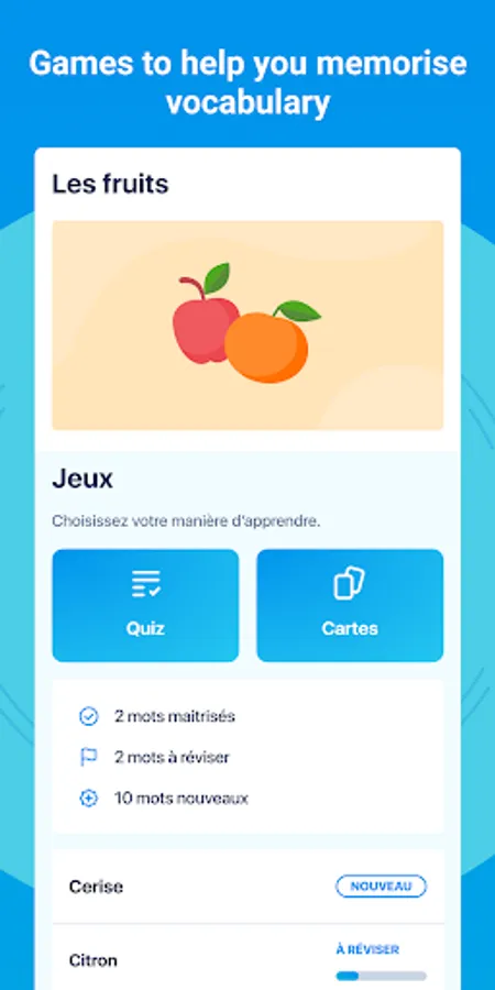 - You select the words and expressions you want to learn and the application facilitates revision and memorization.
