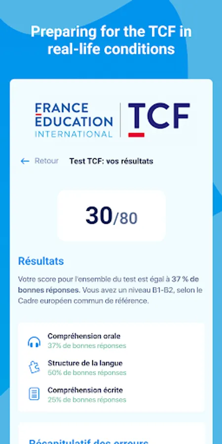 - Prepare for the TCF, the French Knowledge Test, with a series of practice exercises and a simulator in real conditions,
