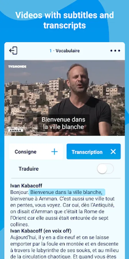 - Hundreds of videos to understand the world in French (reports, music videos, film clips, etc.),