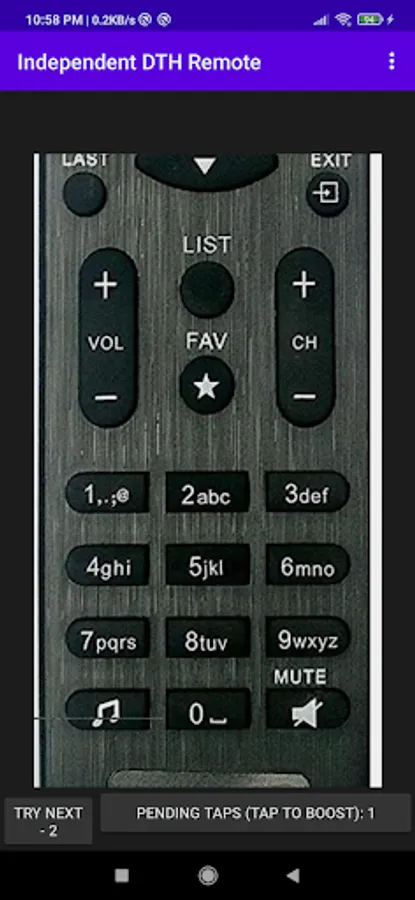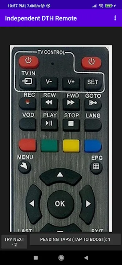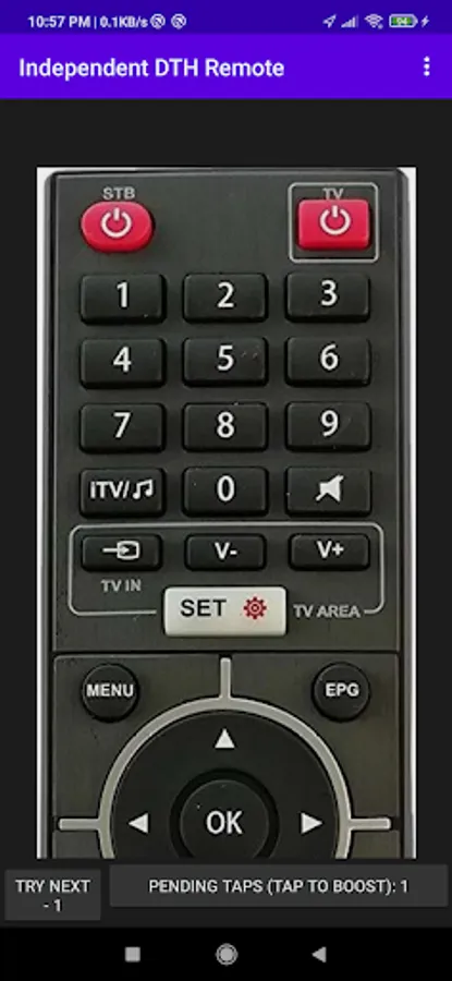 Infrared powered remote for Independent DTH Settop Boxes. This should work across all independent DTH settop/dd-dish boxes