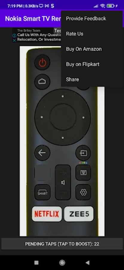 Infrared powered remote for Nokia Smart TVs. This should work across all Nokia smart TVs. Supports Netflix and Zee5.