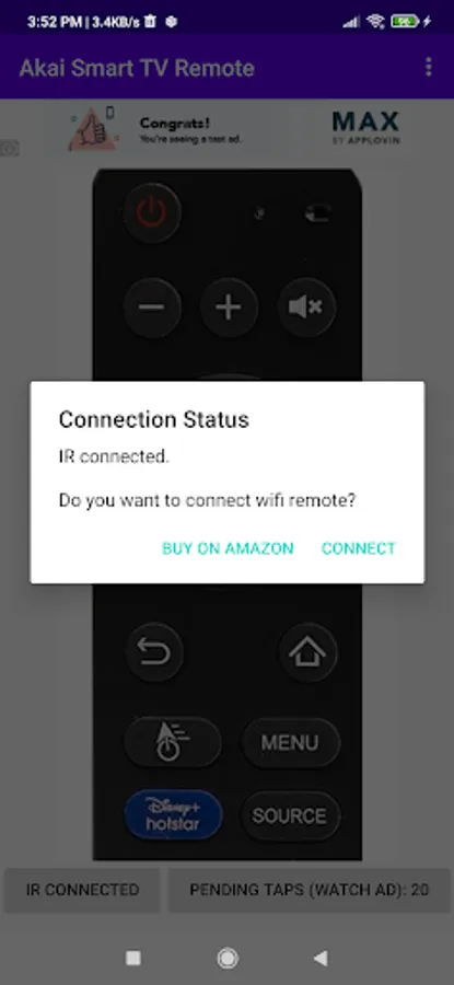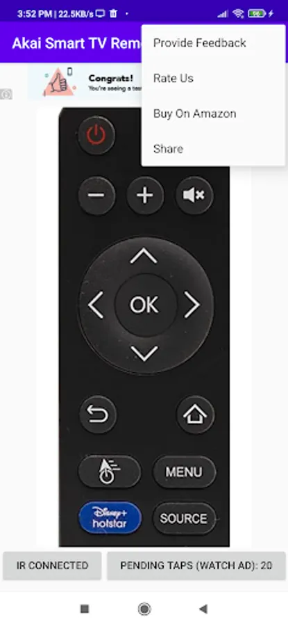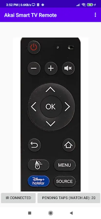 Wifi and Infrared powered remote for Akai Smart Android TVs. This should work across all Akai smart TVs.