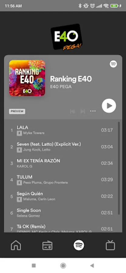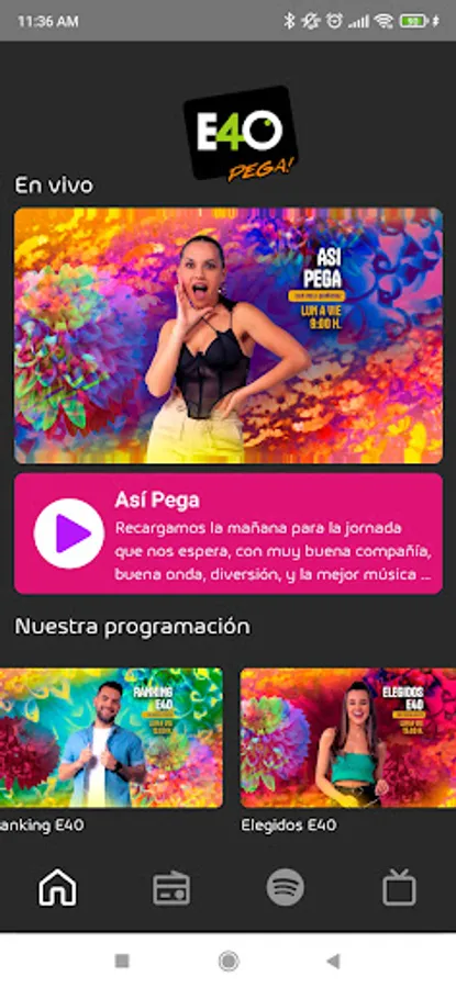 E40 Pega: Fresh, optimistic, dynamic, with more music and company. Based on the High Repetition Formula (TOP 40) and offering hits after hits continuously for 24 hours.