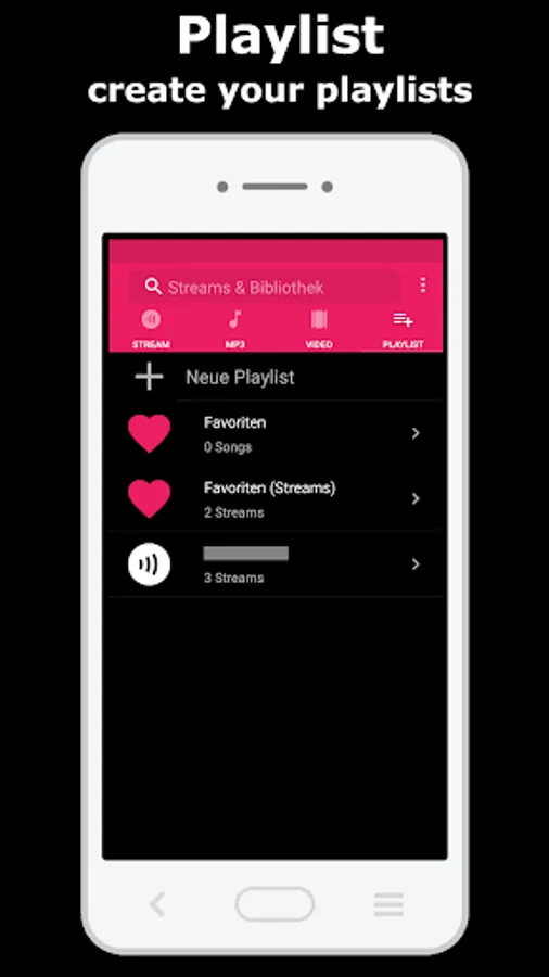 All MP3 files from your device are displayed. You can play them and create playlists.