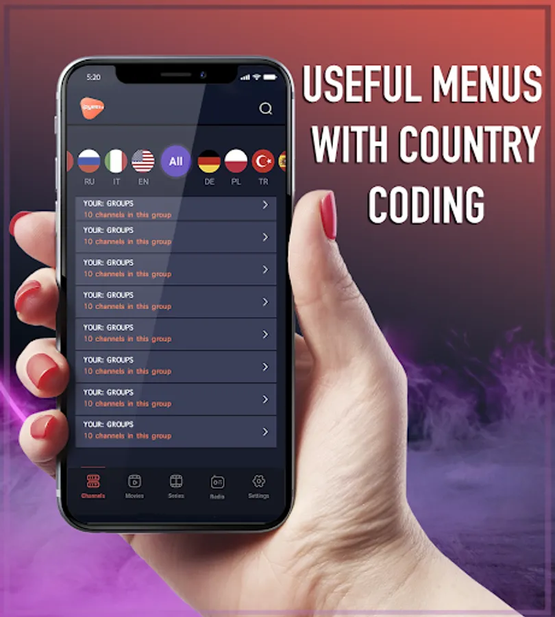 Create your own list and access live TV channels such as movies, series, match broadcasts, radio in the fastest and easiest way.