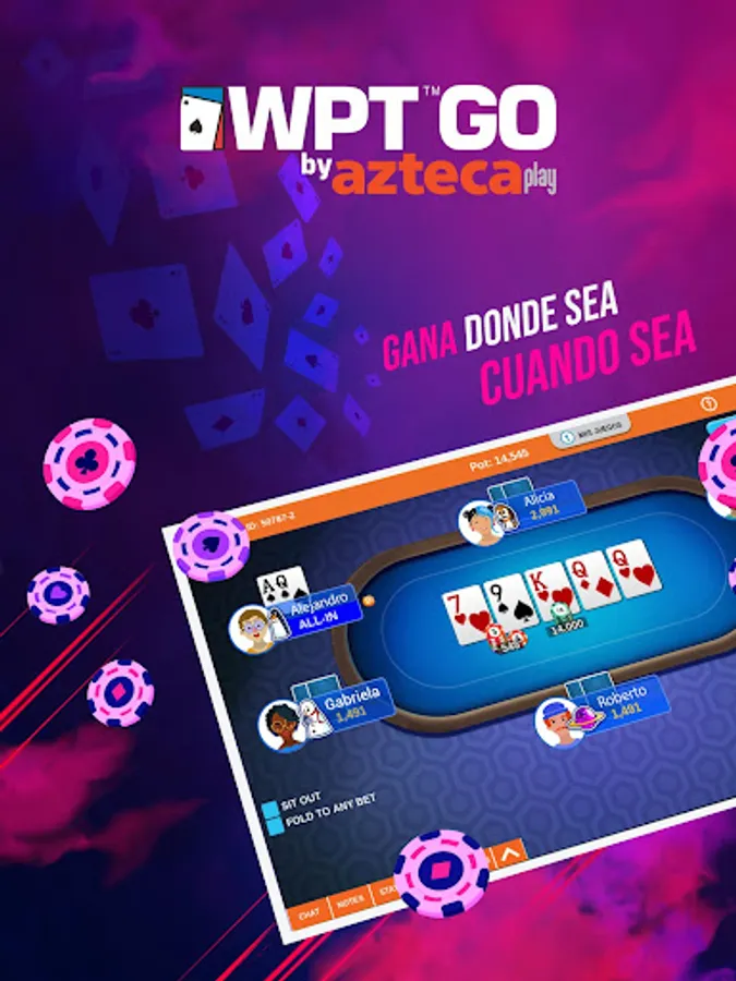 WPTGO by Azteca Play is an application that offers you a world of games so you can enjoy the experience of the casinos from your cell phone.