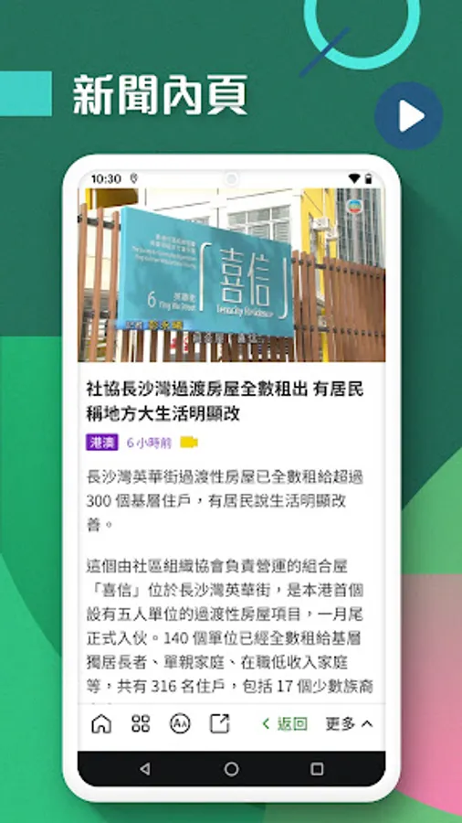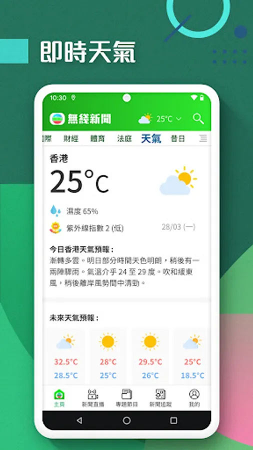 1. Instant up-to-date Local, Macau, Straits, International, Financial, Sports and Court news, latest weather information and news features; view latest news clips with narration of TVB NEWS (some available with Mandarin narration)