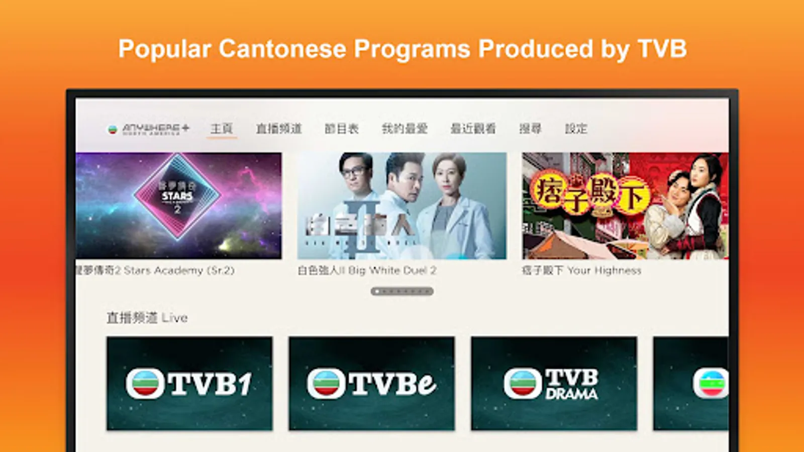 TVBAnywhere+ North America is an official TV online streaming service brought to you by TVB (USA) Inc., a wholly owned U.S. subsidiary of the largest Cantonese and Chinese television program distributor in the world, Hong Kong based, TVB Group.
