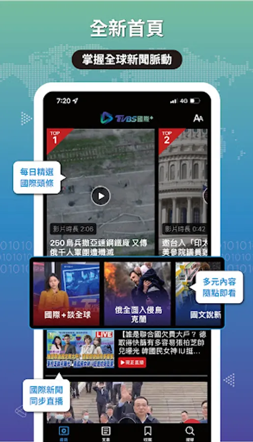 2. Multi-programs On-demand watching: TVBS International + APP contains multi-programs. In addition to news, it also includes Shaokang War Situation Room and TVBS Wenqian's World Weekly, presenting you with diverse international views!