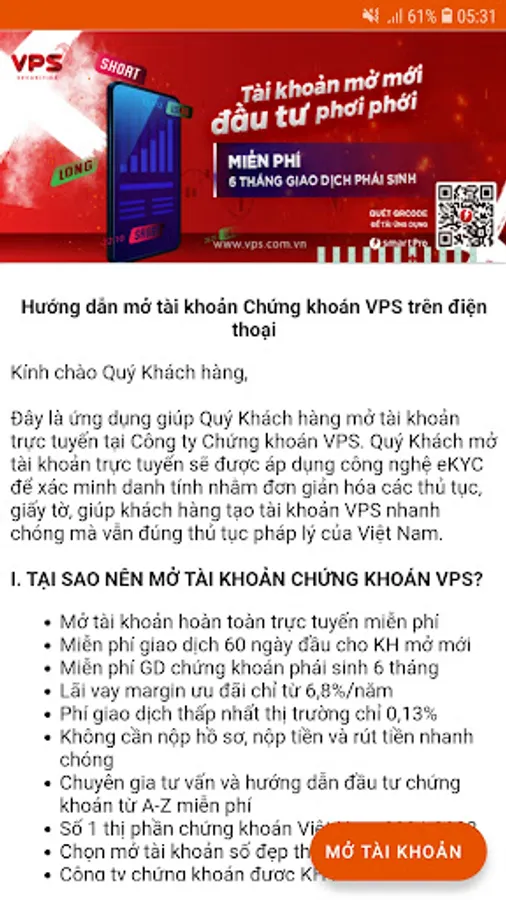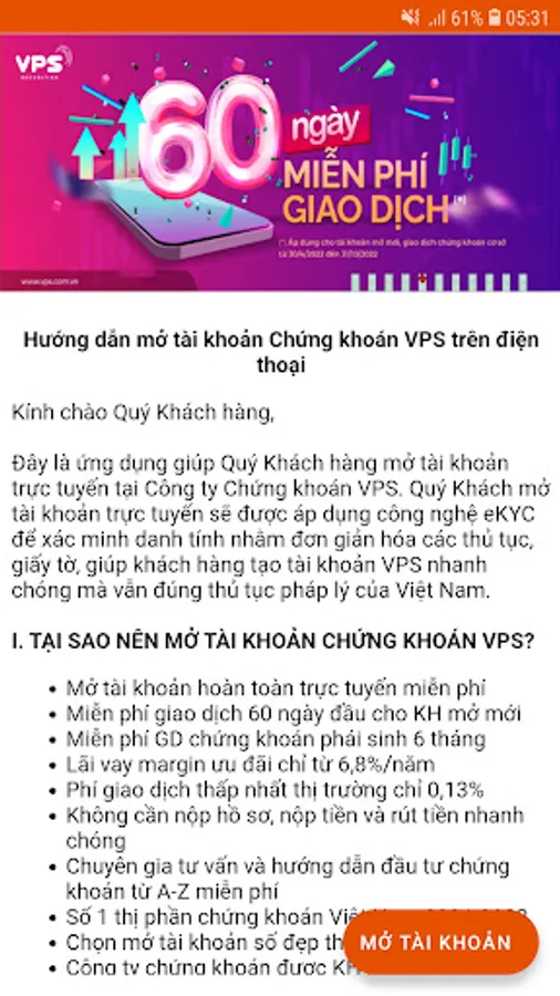 Dear Customers, you have come to the application to open a VPS Securities account on your phone.
