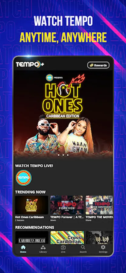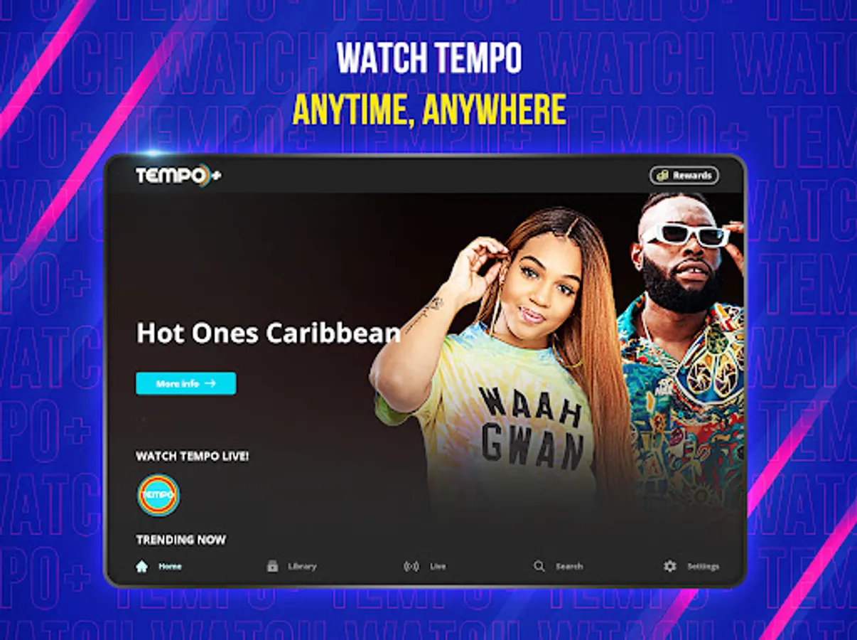 DOWNLOAD to get FREE access to the very best curated Caribbean content on the go with TEMPO+ for streaming videos anywhere, anytime. Earn rewards just from watching. The more you watch, the more you earn!