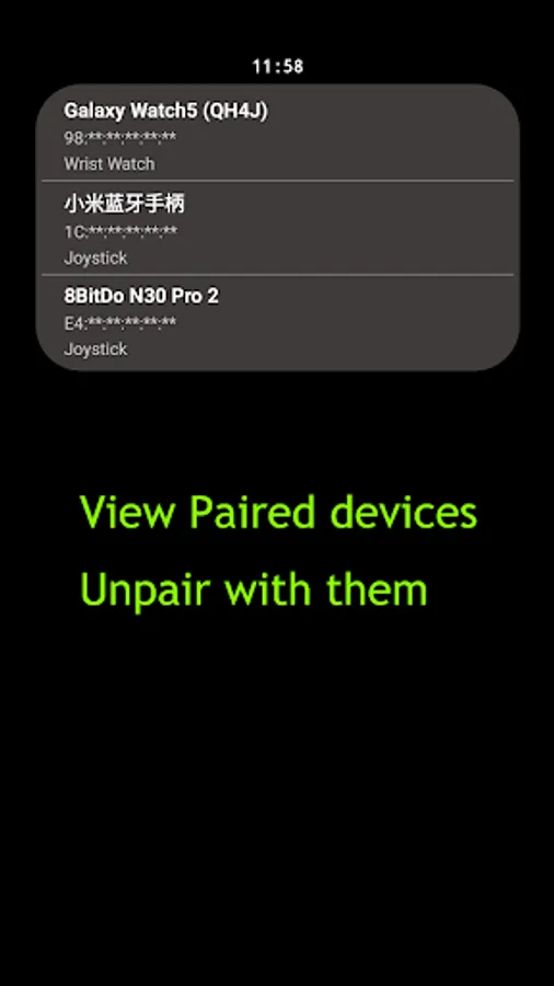 The Bluetooth pairing utility on the Galaxy Watch running Wear OS does not support pairing the watch with a joystick, gamepad, or keyboard. However, this utility enables you to pair your smartwatch with game controllers, allowing you to use a joystick for playing games on your smartwatch.