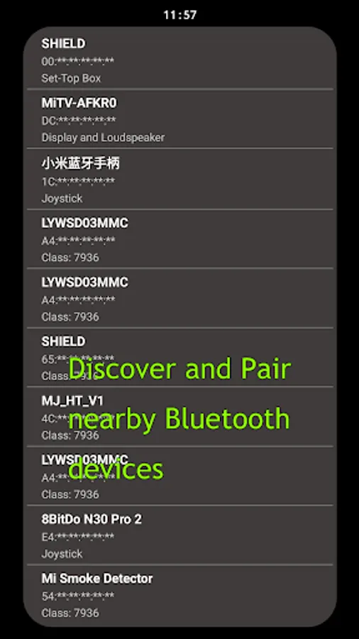 * Required permissions: fine location, bluetooth scan, bluetooth connect