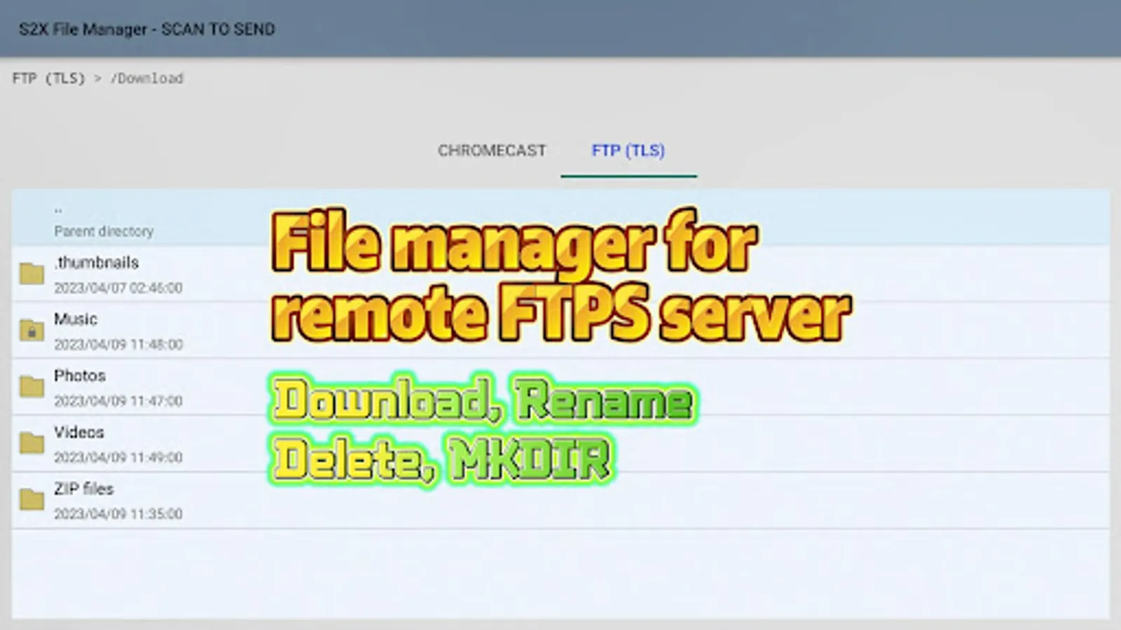 * Remote file management functionalities (through FTPS) including RENAME, DELETE, and MKDIR for files and directories.