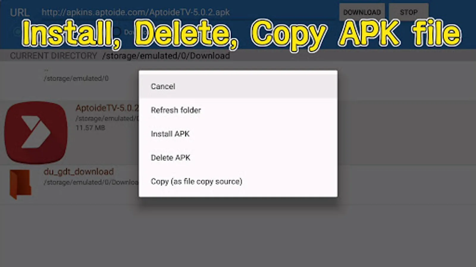 An file manager utility for users to copy or transfer (download) APK files to Android TV's storage, users can then install it if they desire to.
