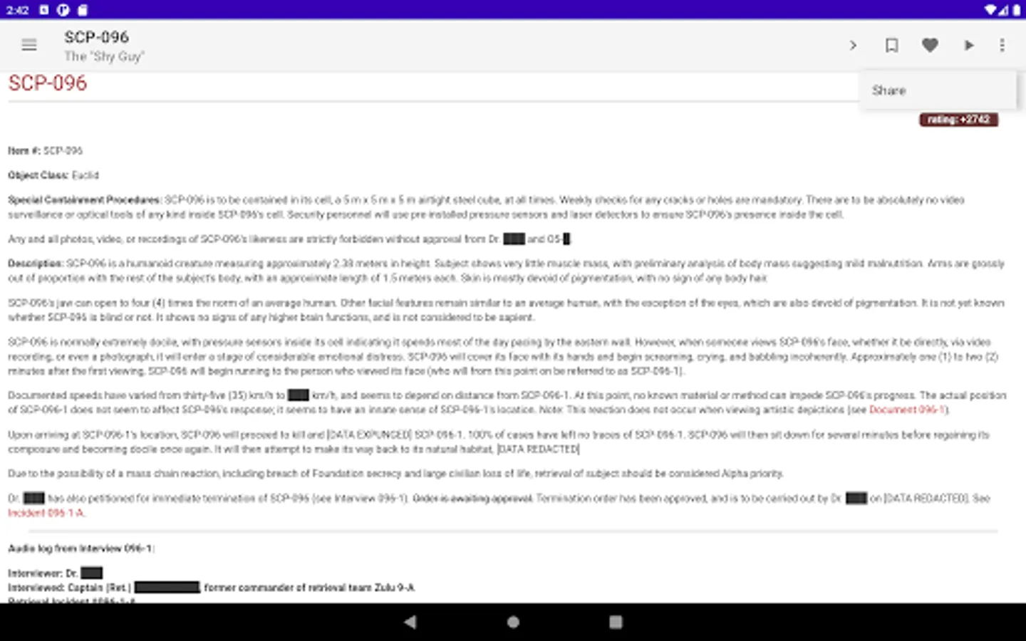 Read about anomalous and mysterious events, locations and beings from the SCP Foundation. Secure, Contain, Protect.