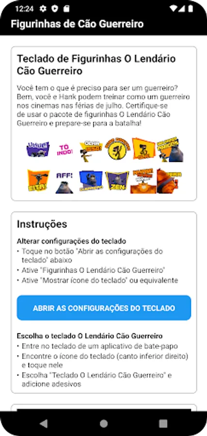 *Follow in-app instructions to enable "The Legendary Dog Warrior Stickers" keyboard in settings