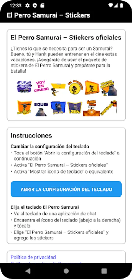 * Follow the instructions in the application to activate the "Samurai Dog – Official Stickers" keyboard in the settings.