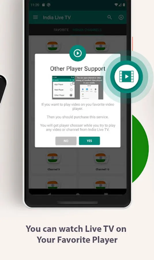 • Other Player Supports (You can watch Live channels to any your favorite player like (MX Player, VLC Player etc.))