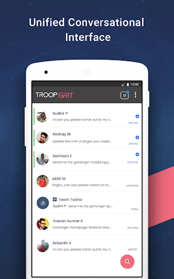 Troop GRIT Premise is a compact office chat application with amazing security and feature implementation facilitating safe and secured business data sharing. It offers a collaborative work forum for business needs. Troop GRIT Premise for business is the sure shot tonic for business assisting you in reducing the time used up for manual data circulation and team work. Troop GRIT Premise, the business chat application is one among all group chat apps which comes with unlimited group creation. It is not only instant messaging for business but also lets you share files of diverse format along with current location and contacts. With its recent version, Troop GRIT Premise is good to go for team collaboration across corporates and will be updated with many more professional features which are on the drawing table.