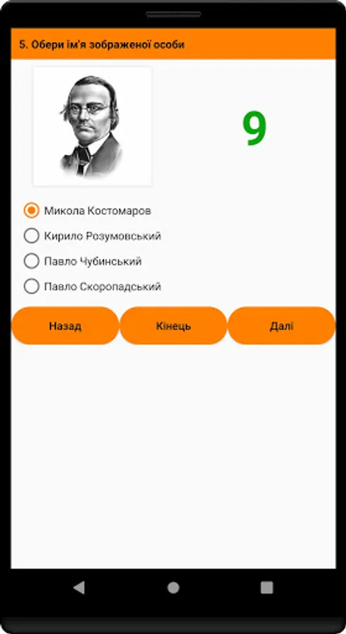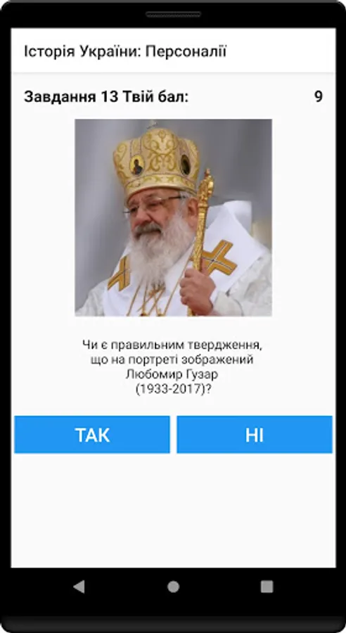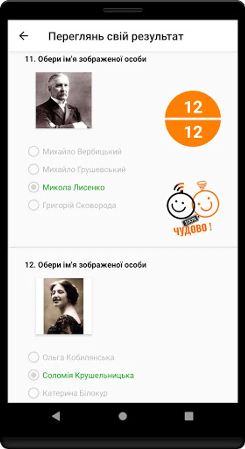 The third section - tests to test knowledge of images of historical figures, which includes 14 tasks with ten questions such as "true-false". No internet connection required.