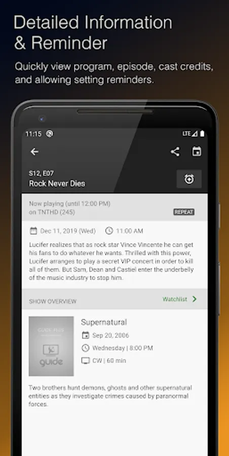 • set reminder for any programs you want to watch and build a custom TV program calendar help you never miss any favorite TV programs.